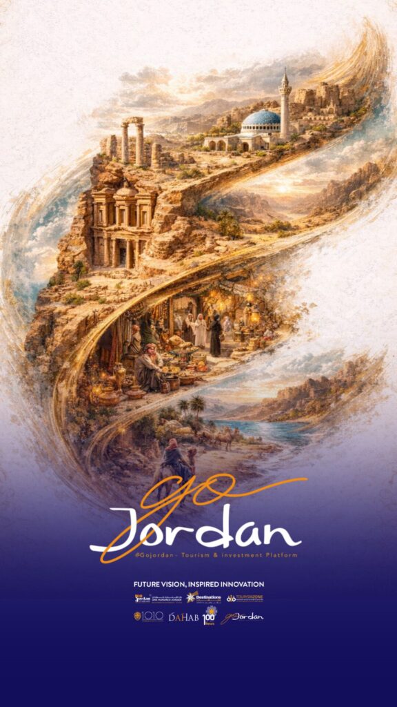 Go Jordan هي منصة وطنية رقمية شاملة للسياحة والاستثمار، تم تطويرها لتكون الدليل الإلكتروني التفاعلي للأردن، وواجهة موحّدة تجمع الجهود التسويقية والترويجية تحت مظلة واحدة، وبحملة متكاملة تخاطب العالم بلغة عصرية ومؤثرة.